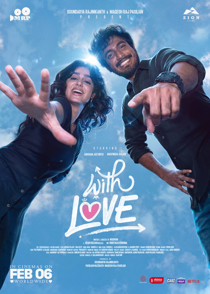 “With Love” is a romantic drama directed by Madhan and produced by Soundarya Rajinikanth and Magesh Raj Pasilian under the banners Zion Films and MRP Entertainment. With Valentine’s Day approaching, the film arrives with a warm romantic feel ahead of the season and is scheduled for release on 6 February 2026. The film is designed as a soft, emotional love story that reflects modern relationships in a gentle, relatable way.